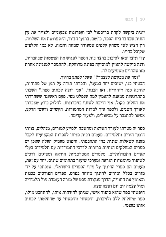 כשמאחורי לא מעט שנות ניסיון בחינוך, הוראה והדרכת מורים בכיתות של ילדים ונוער עם לקויות למידה, הבנתי שאני חייבת לחלוק ולשתף בשאלות שעמדו לנגד עיני בכל פעם שפגשתי תלמיד, ובתובנות שצמחו מאותה פגישה. אלה הלכו והתגבשו לגישה ותפיסה חינוכית, ששמה במרכז את החוויה, הקשר והדיאלוג בין מורה לתלמידיה.