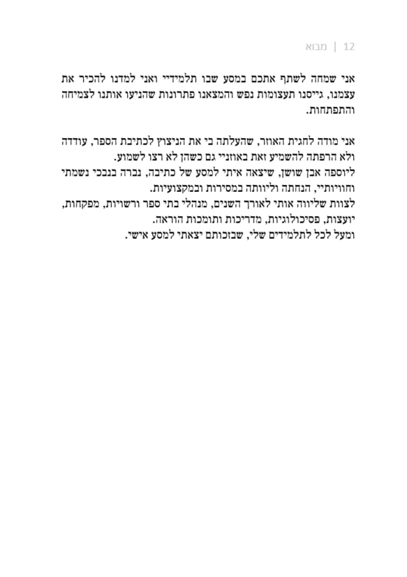 אבל מעל לכל, מסע אישי הוא ספר אמיץ ומרגש למי שבליבו אמונה ביכולת האדם להשתנות, לצמוח ולהגשים חלומות.