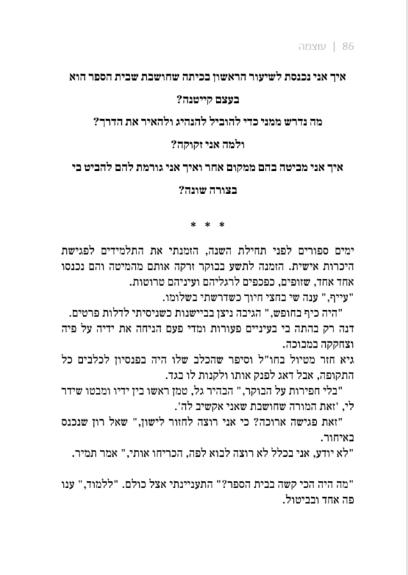 בספר שכתבתי, ובמרחב למידה שפתחתי לתלמידים ומורים, אני מאירה נקודות מבט אל ההזדמנות ההדדית שטמונה במפגש בין מורה לתלמיד, בבסיסה תהליכי שינוי צמיחה והתפתחות הדדיים, פיתוח כישורים ויכולות והכרה במשמעות הכבירה למעשים של עצמנו.